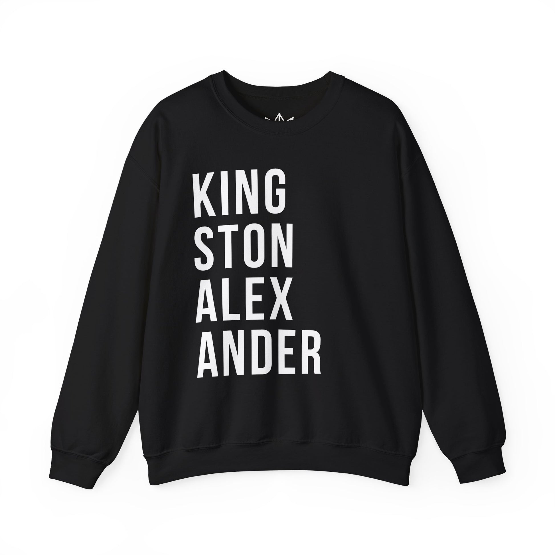 Bold branding meets everyday comfort in the Kingston Alexander Stacked Logo Sweatshirt. Designed with a clean vertical layout of our signature name, this unisex pullover brings effortless style to your wardrobe. Made from a durable 50% cotton, 50% polyester blend, it offers warmth, softness, and long-lasting wear—perfect for layering in any season.